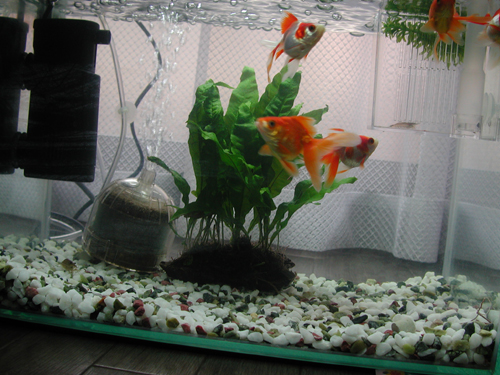 バクテリアが住み着けば金魚やエビにとっても良いはず・・